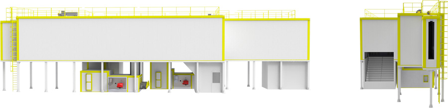 • Heat loss is prevented by air curtains at the Inlets and Outlets and specially designed air breakers.