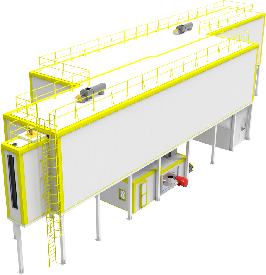 Wet paint or electrostatic powder coating curing ovens used in automatic systems.